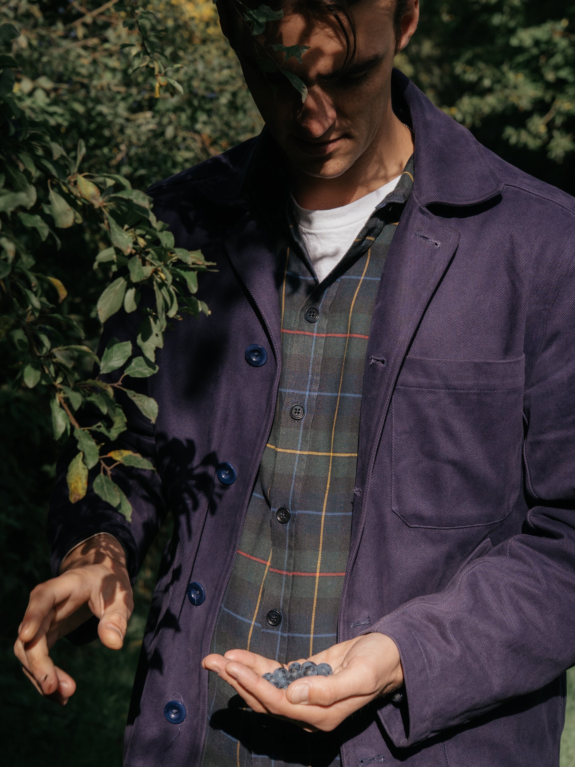 The Test Jacket - Indigo Blue: built for work, worn for life. Made in England from a robust 413 g/m² cotton twill, this jacket carries weight and presence without compromising comfort. It’s a piece that softens with time, shaping itself to its wearer - the kind of garment that only gets better the harder it’s lived in.