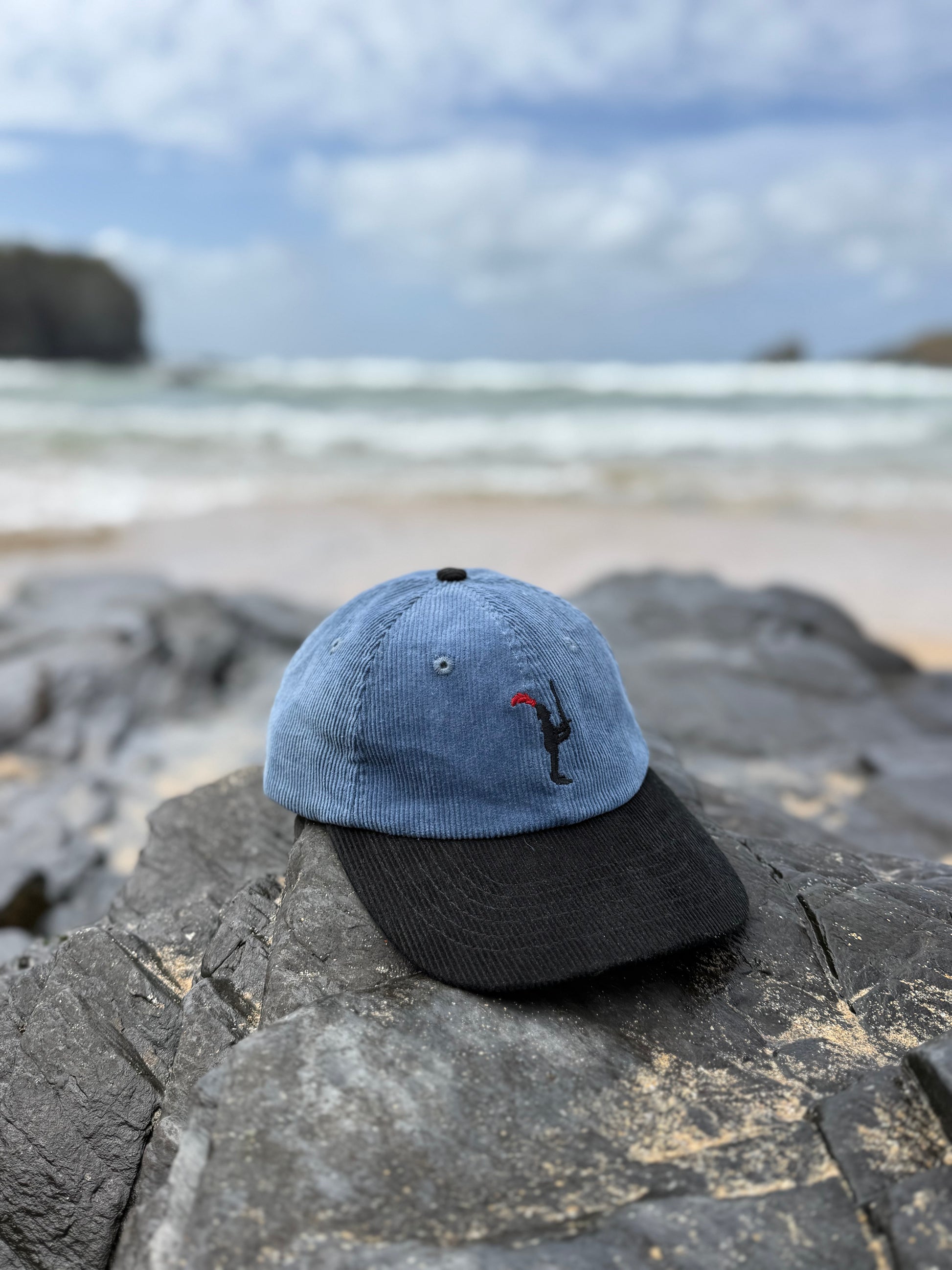 The Cove Cap is inspired by the solitude of the shoreline — salt air, stone paths, and the kind of silence only the coast can offer. Made from soft yet durable dusty blue needlecord with a black brim, it’s built for walks by the sea or moments when you just need space to breathe.